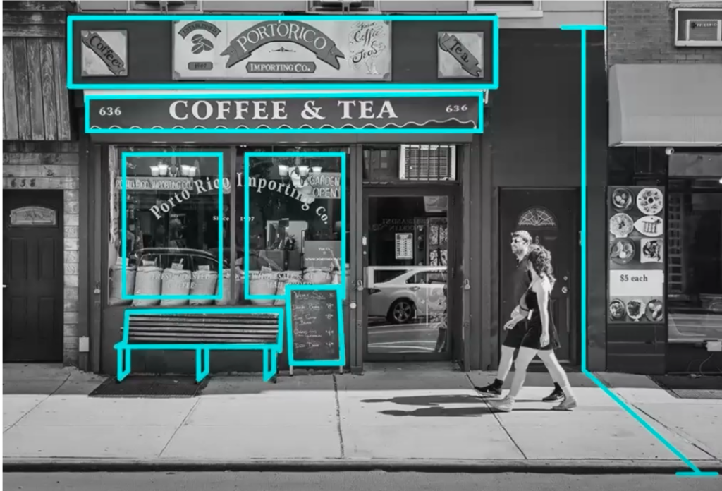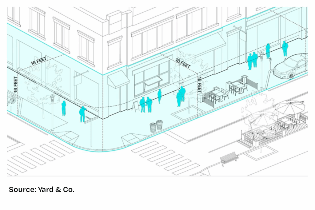 The first 16 feet extending from a building out and up is important for district vitality to help: